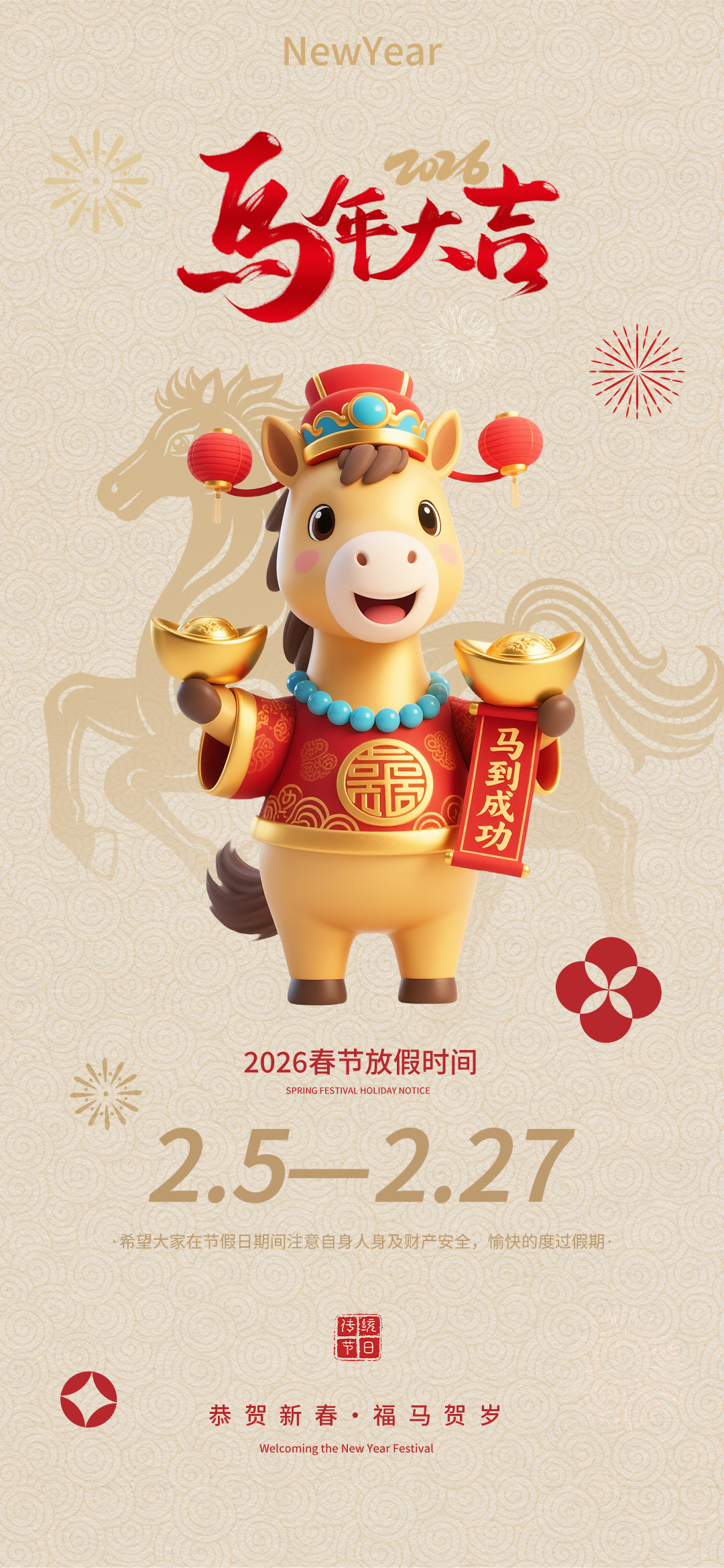 新春将至,万象更新。为欢度新春佳节,结合公司实际经营情况,现将2026年春节放假安排及相关事宜通知如下: